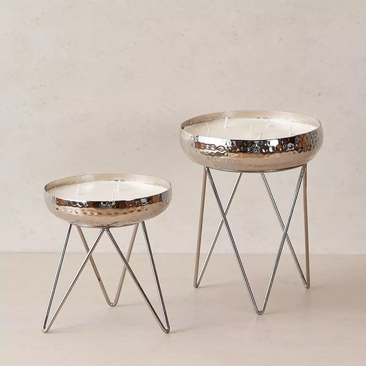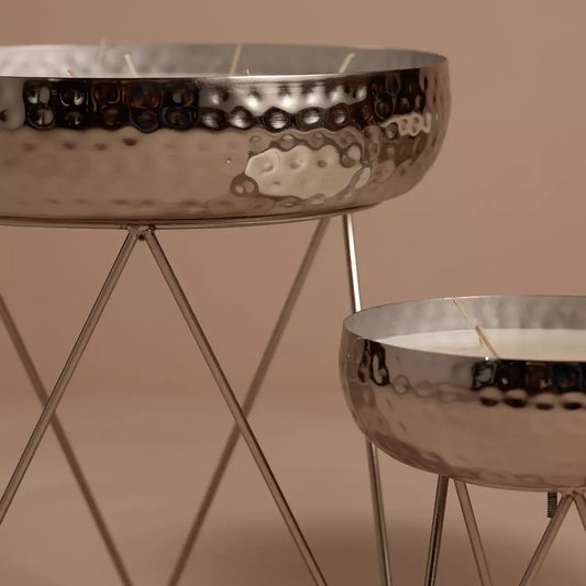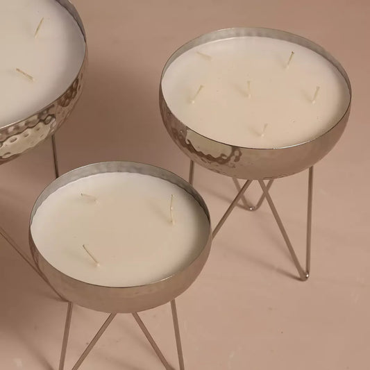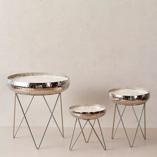 Stardust Silver Hammered Candle Urlis on a stand set of 3
