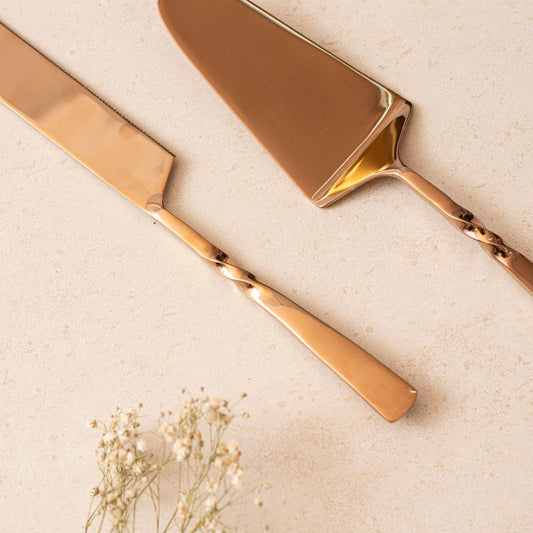 Perfectly handcrafted with food grade stainless steel, this minimalistic set with a twist comes in a beautiful bronze colour, the colour is unique and compliments everything it is clubbed with. A celebratory cake isn't complete without a cake knife set.This set makes up for a perfect gift aswell.