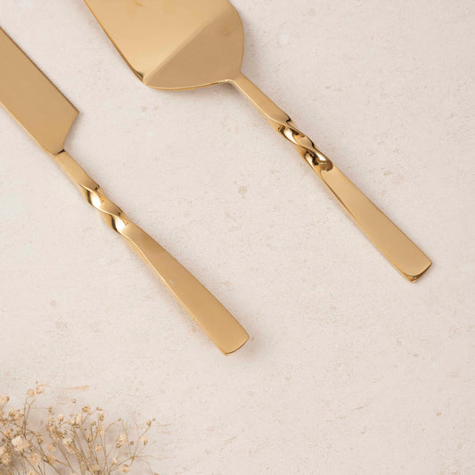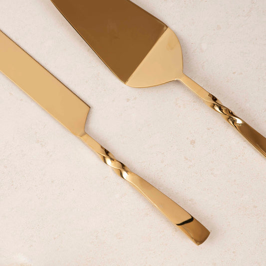 Cake Knife & Server - Twisted Gold