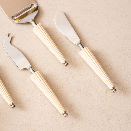 Our beautiful Ivory umbrella collection is neutral with depth and texture. This collection is made from food grade stainless steel with handmade raisin umbrellas. This set makes for a perfect gift for all cheese lovers aswell.