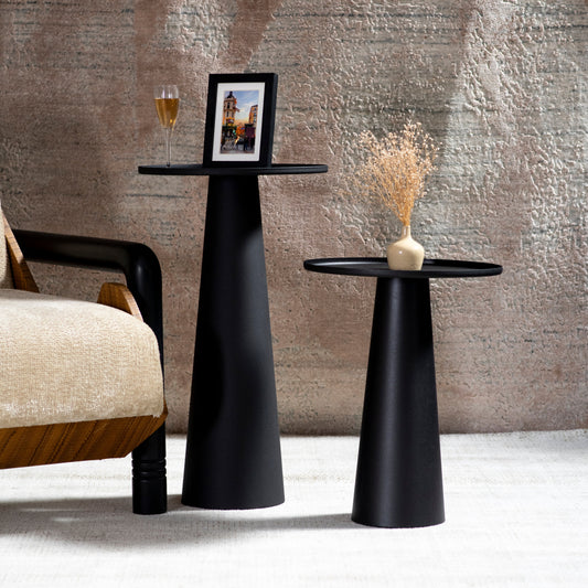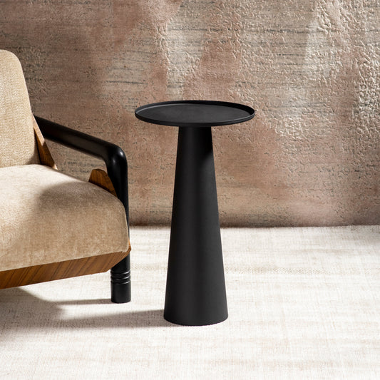 A table that moves with you between a lively gathering and a quiet evening corner. Matte black, sculpted and sleek, designed to hold your drinks, books, or flowers with effortless style. Pair with the shorter Brie or let it stand alone, a modern accent that feels at home anywhere.