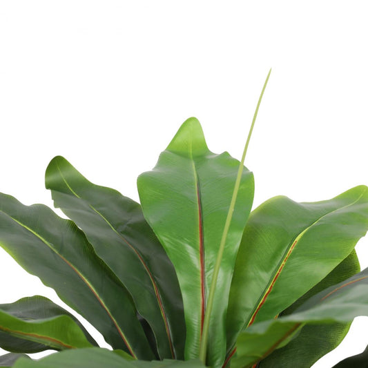 Birds nest ferns are identified by their flat and wavy fronds. This plant has long, thick fronds similar to banana leaves. The natural folds on the leaves, the tropical feel of this plant makes them feel unique and natural. The unique tinge of red on the veins of the leaves makes them stand out.