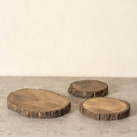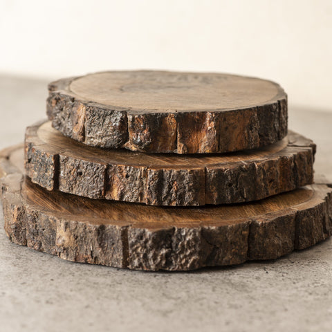 These beautiful raw wooden bark trivets come in a set of 3. They are perfect to put your hot dishes on or they can be used as decor pieces on a flat lay table for buffets or meal time.