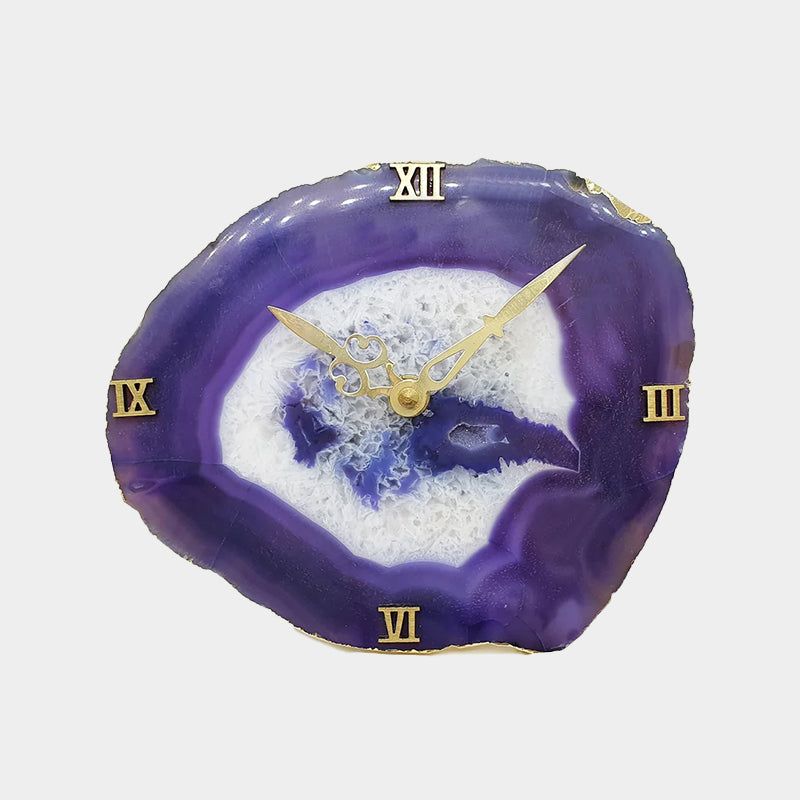 Clocks are an integral part of any household. The Indian art of Vastu Shastra emphasizes the positive energy a clock can bring into your home. Agate clocks multiply this flow of positive energy. They have long since been regarded as stones that can bring joy to your life. The Chinese art of Feng Shui places great importance on the magical abilities of the agate stone. Blue agate can enhance your energy, strength, and courage while reducing stress, fear, and anxiety. An agate clock on your desk can help you incorporate these energies into your daily life and become more self-assured.