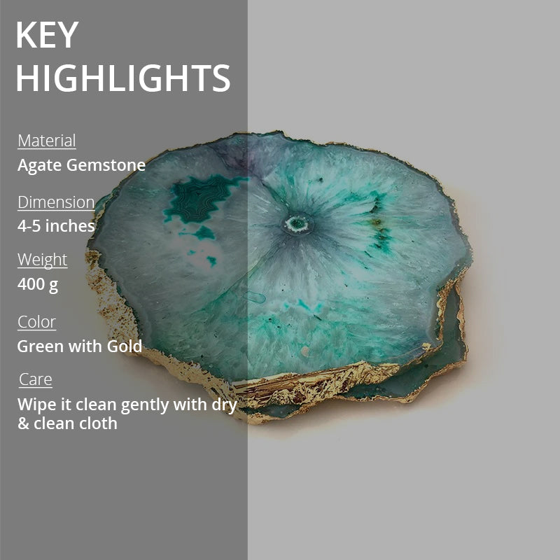 These coasters are the perfect way to shield your tables from condensation and heat damage while adding a touch of uniqueness to your decor. The durable material of the agate makes these coasters as efficient as they are gorgeous. Additionally, agate stones are a powerful beacon for positive energy, and it is always advantageous to have some in your surroundings. Green agates are known to improve an individual's generosity and compassion. They also help you enhance your mental and emotional flexibility. Green agates can aid a person in their ability to make decisions and solve disputes peacefully.