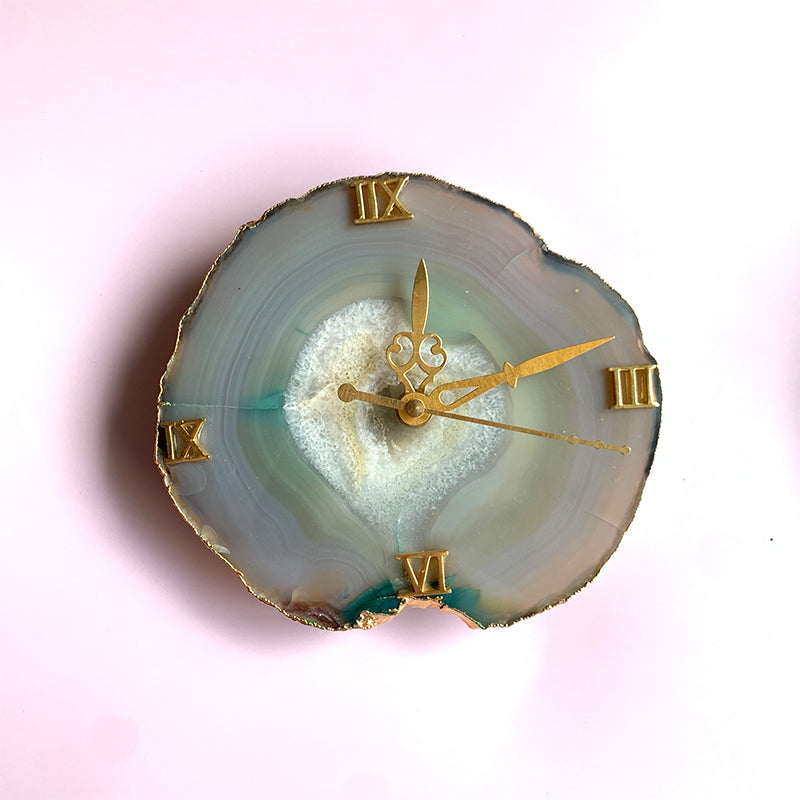 • Handcrafted from stunning agate stones, this timepiece makes a beautiful housewarming gift or work of art for any home.