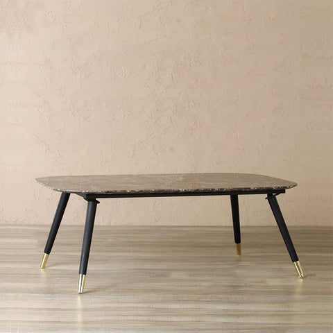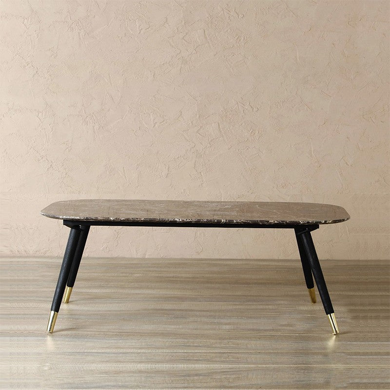 This Stunning Handcrafted Rectangular Design Coffee Table offers unmistakable style, providing a truly glamorous and sophisticated focus for modern and contemporary interiors. Paying superb attention to detail this fabulous coffee table features emperador or wonder white marble top and tapered wooden legs made out of Mango wood in black with brass cone at the bottom that embraces a simplistic yet elegant style.