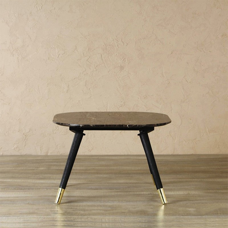 This Stunning Handcrafted Rectangular Design Side Table offers unmistakable style, providing a truly glamorous and sophisticated focus for modern and contemporary interiors. Paying superb attention to detail this fabulous side table features emperador marble top and tapered wooden legs made out of mango wood in black with brass cone at the bottom that embraces a simplistic yet elegant style.