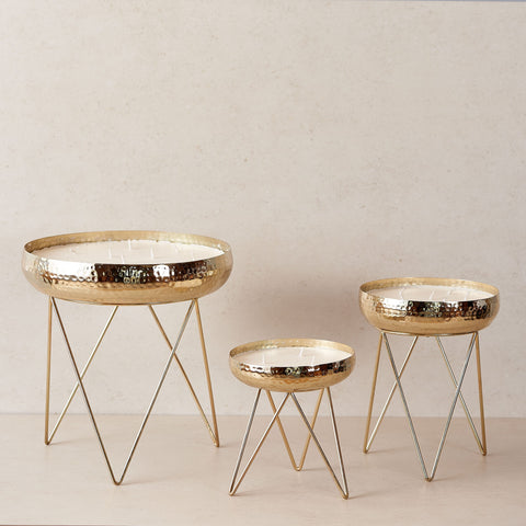 Stardust Hammered Candle Brass Urli with Stand (Set of 3)