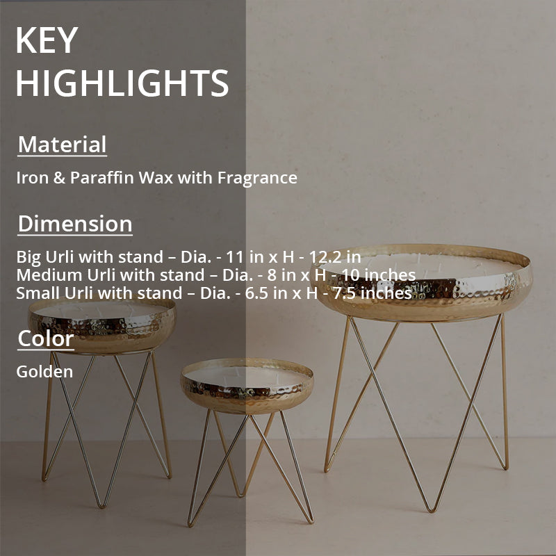 Stardust Hammered Candle Brass Urli with Stand | Brass Urli Decoration Set of 3