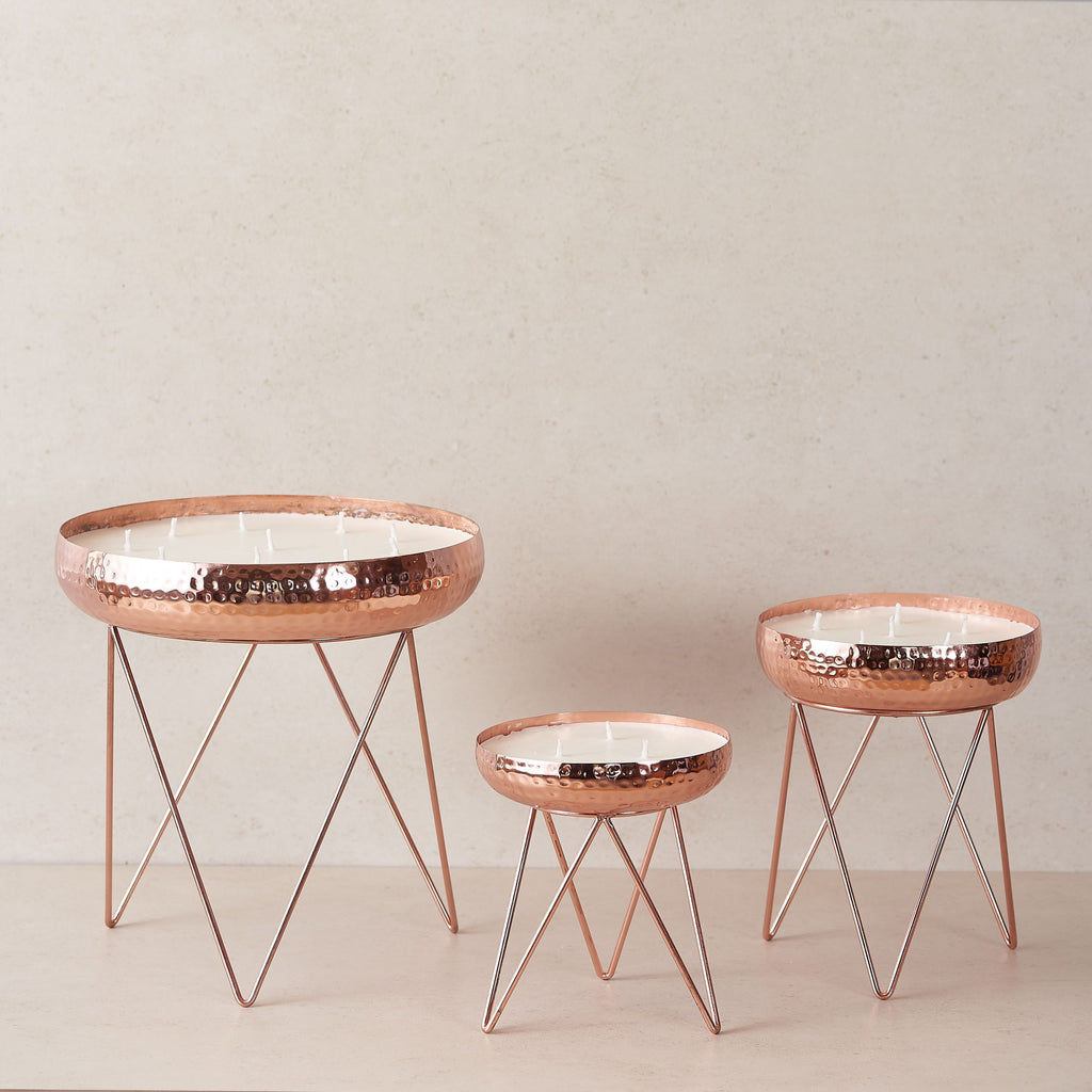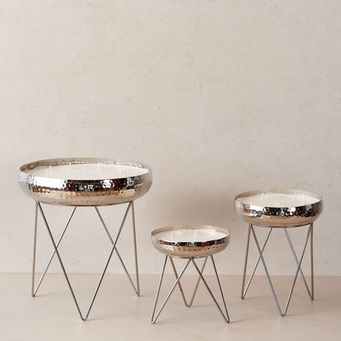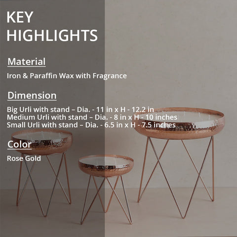These special candle urlis are a great addition to any festive occasion, wedding, housewarming and cultural feast. Spurring the senses with a mild and sweet fragrance of Vanilla Bean in pure paraffin wax, these hammered candle stands can be re-utilised once the candle is over by filling them with colourful flowers. Available in three colours: Silver, Gold and Rose Gold.
